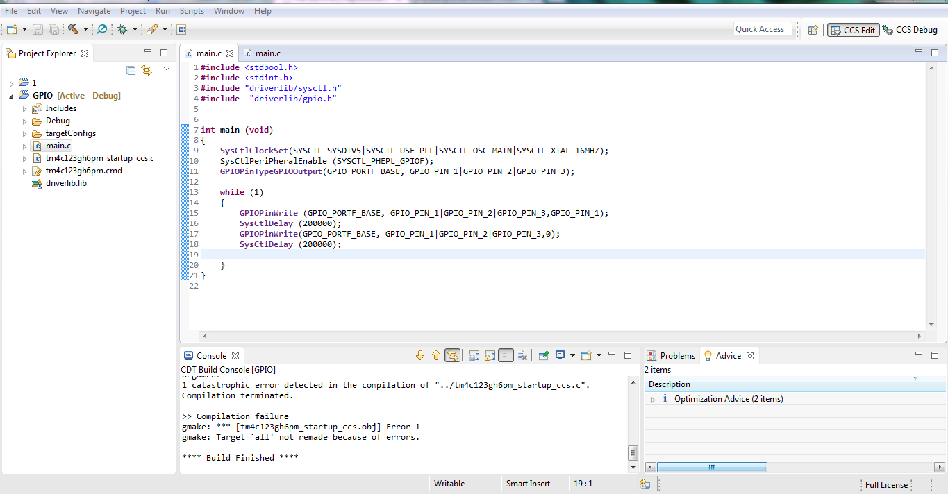 Bạn gửi project lên mình xem luôn cho, theo mình thấy thì bạn gõ sai cú pháp cho hàm enable GPIO rồi phải là SysCtlPeripheralEnable(SYSCTL_PERIPH_GPIOF); mới đúng, à hàm config clock cũng sai luôn rồi phải là SysCtlClockSet(SYSCTL_SYSDIV_5|SYSCTL_USE_PLL|SYSCTL_OSC_MAIN|SYSCTL_XTAL_16MHZ);