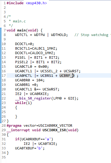 IE2 |= UCA0RXIE;
